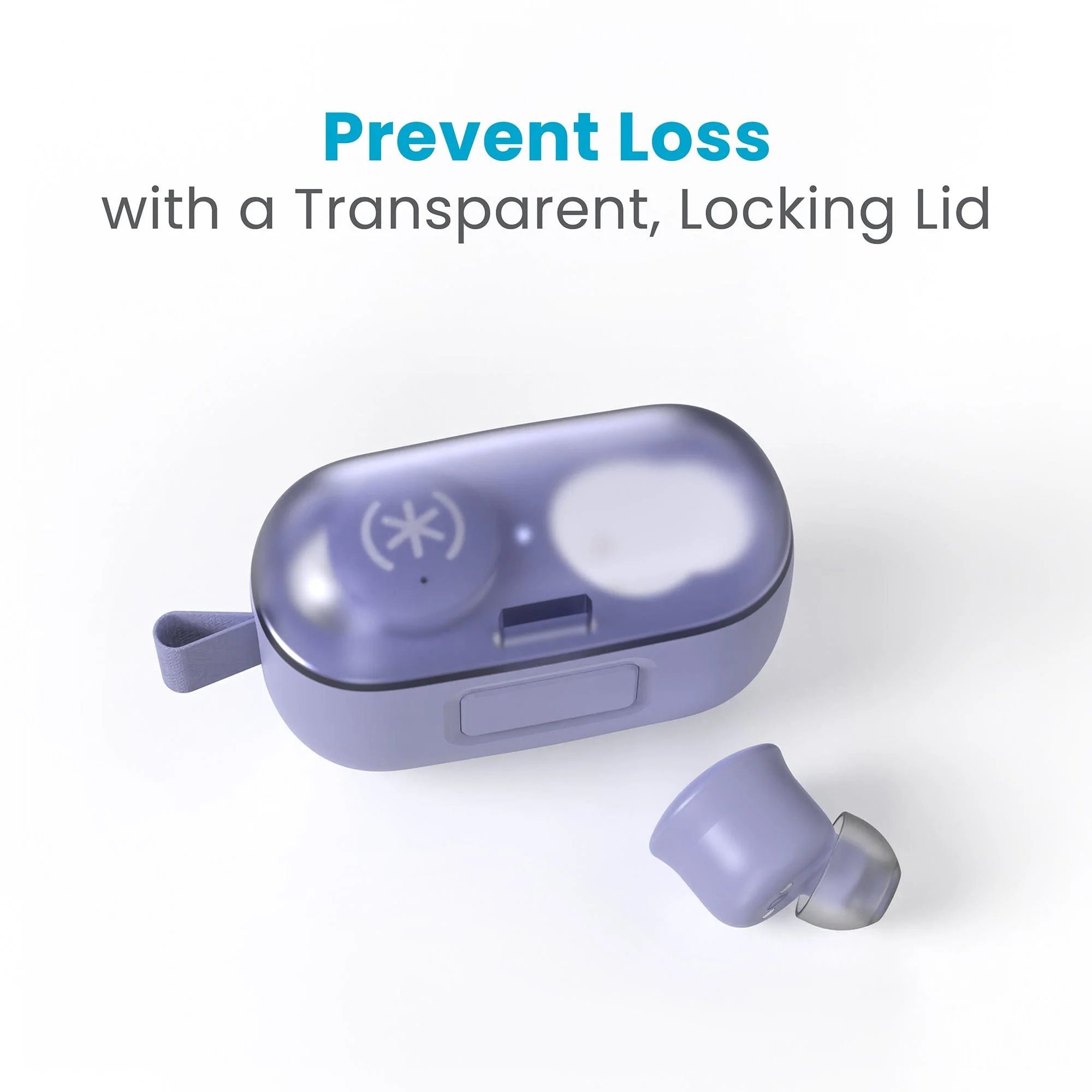 GEMTONES™ Play True Wireless Bluetooth earbuds are designed to help prevent earbud loss by having a locking case lid that is translucent with a contrasting color beneath the earbuds to make it obvious when one is missing.